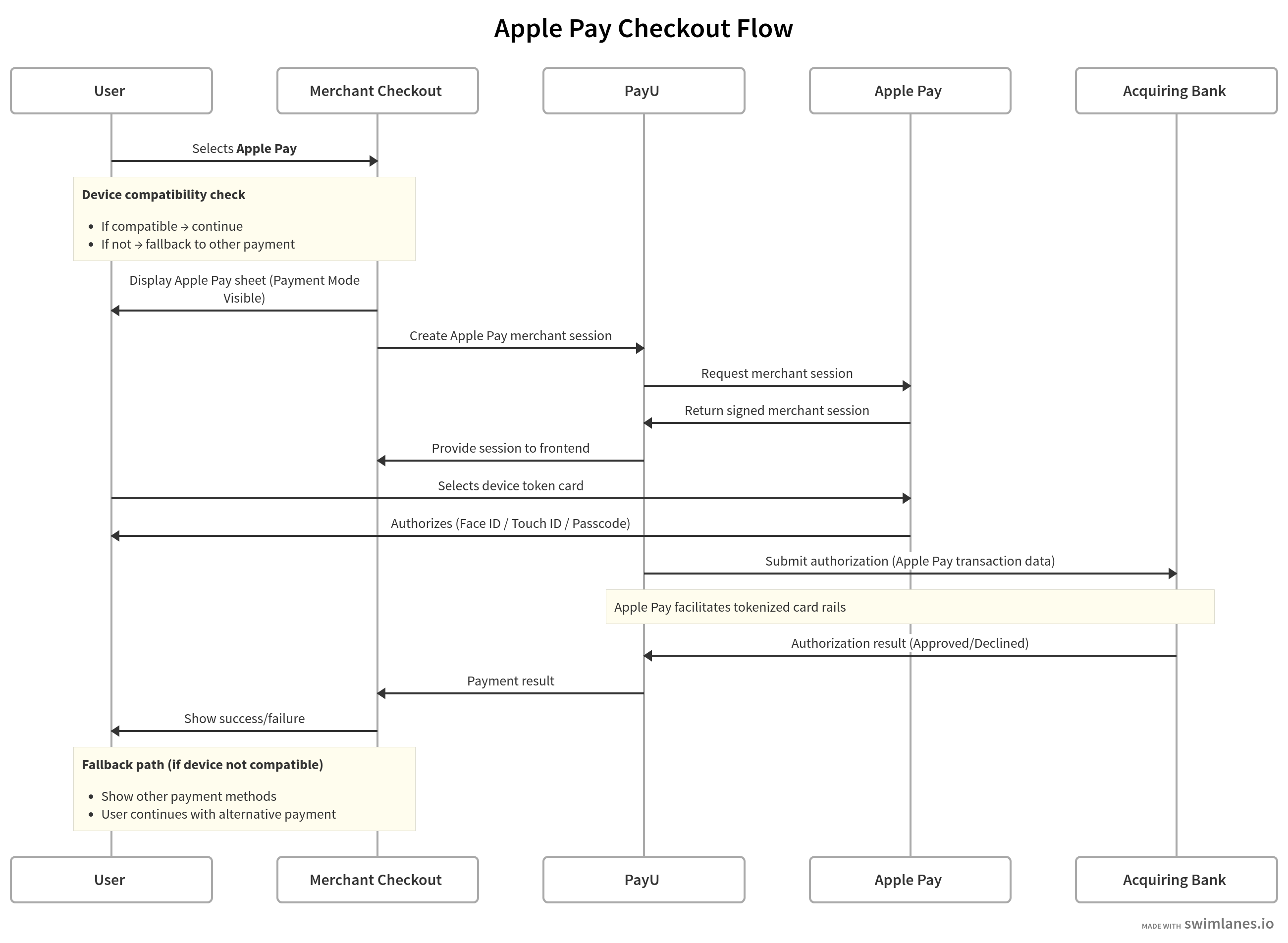 - Customer selects Apple Pay on PayU checkout page