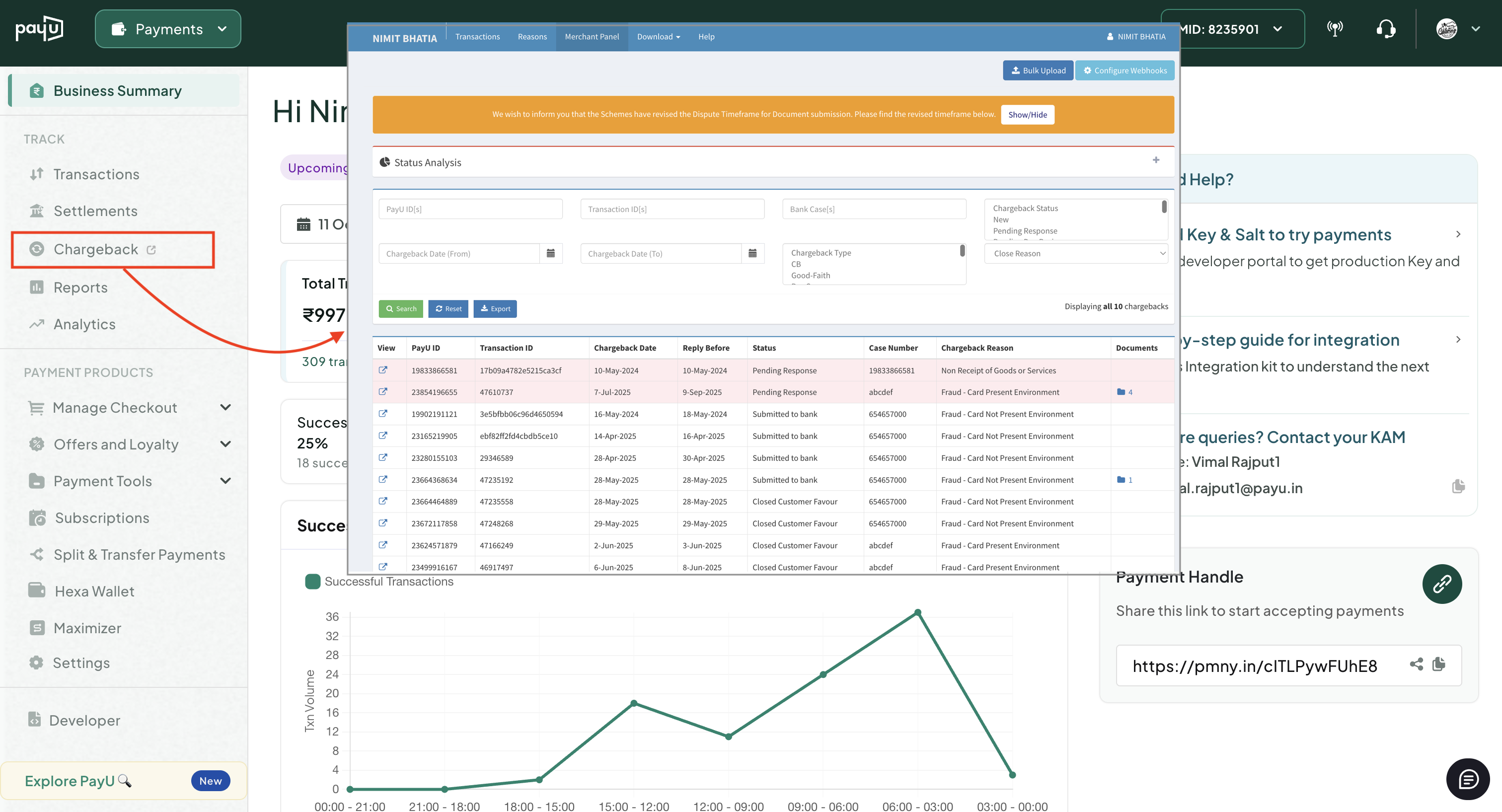 The PayU Merchant Chargeback Dashboard is an integrated system designed to help merchants view, track, and respond to chargeback cases, net-banking disputes, and fraudulent transactions. This comprehensive dashboard allows you to:
