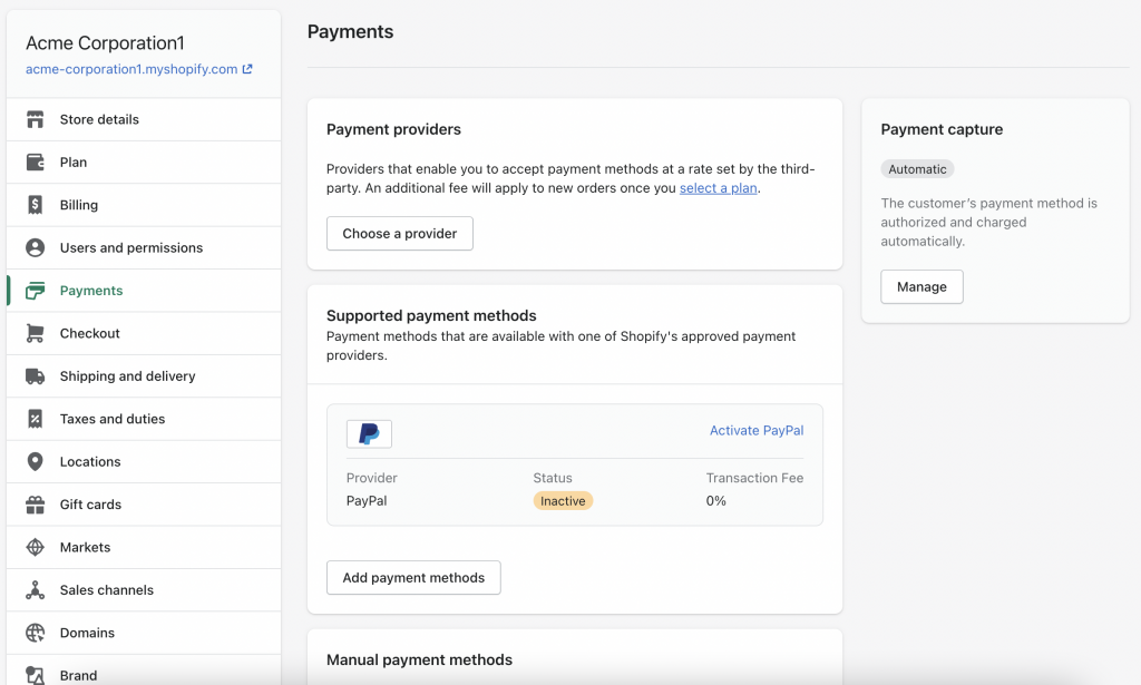 Click Add payment methods under the Supported Payment methods section.