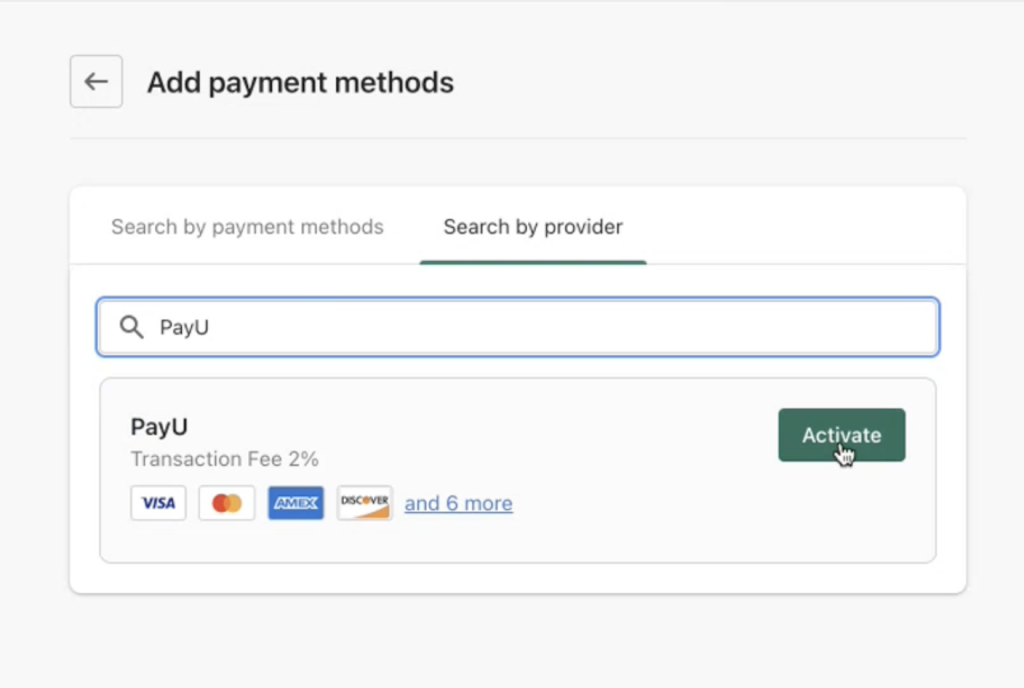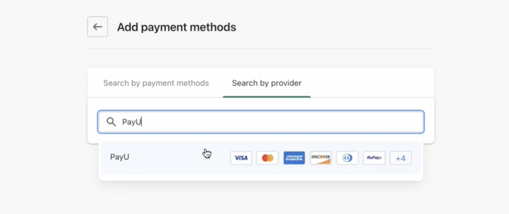 Select the Search by provider tab and enter PayU.