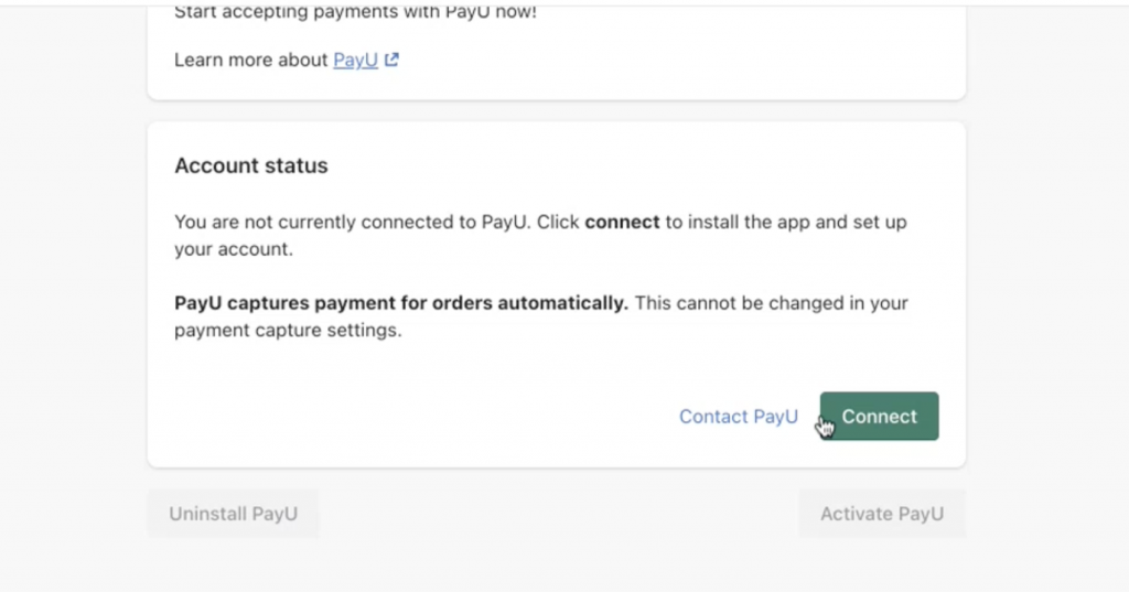 - Click Activate PayU.