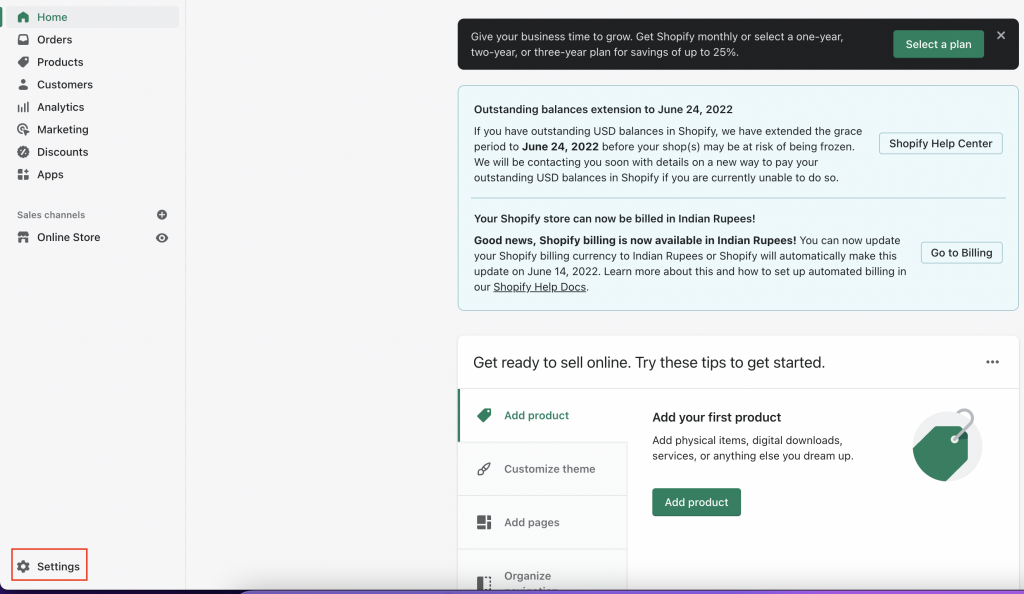 Log in to your Shopify account if not already logged in.