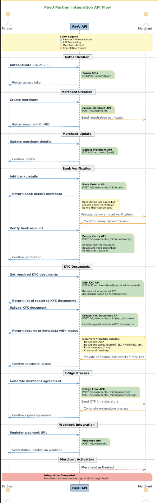 This documentation provides comprehensive guidance for integrating with PayU's Partner Integration API. This API enables businesses and individual partners to integrate PayU's payment solutions into their platforms, onboard merchants, and manage the complete merchant lifecycle.