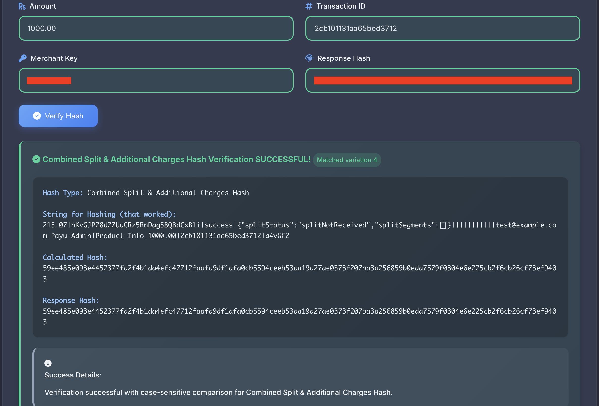 - The tool will display the hash calculated under Calculated Hash and hash what you filled earlier in Response Hash.